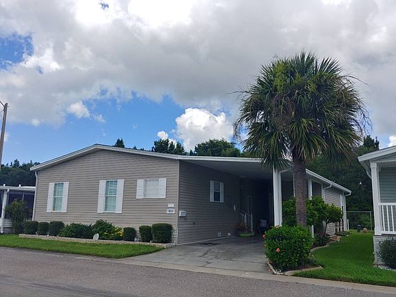 You will never guess you've stepped into a mobile home when you walk inside this LUXURY HOME! WELCOME TO THE BEST! This immaculate 2007 Jacobson home is the Cadillac of Mobiles! High end quality is obviously demonstrated all throughout this Mansion! All the walls and ceilings are dry walled with 10 foot ceilings and crown molding. Soft neutral colored walls, Louvre shutters throughout the house. Elaborate WRAP AROUND KITCHEN with HUGE WALK IN PANTRY, built in WINE REFRIGERATOR, dishwasher, side by side refrigerator, smooth top range, beautiful counters and cabinets galore. The Kitchen overlooks the Lavish FULLY FURNISHED LIVING ROOM with lots of windows which make this home open and airy. ALL APPLIANCES AND HIGH END FURNISHINGS STAY!! Just off the exquisite dining area there are double sliding doors into the BONUS ROOM! Fully functional WITH CENTRAL AC this room can be used as an office, den, sunroom, sewing room or anything you wish! Each of the THREE BEDROOMS are HUGE with plenty of closet space and updated ceiling fans in every room. Settle in for the evening in your MASTER BEDROOM BUILT TO SUIT A KING AND QUEEN! This Royal quality 4 poster bedroom set will have you dreaming. Also enjoy a huge walk in closet! Master ensuite is nothing short of perfect with enormous walk in shower featuring large bench seating area and separate utility closet with Washer and Dryer! Outside,the covered carport will fit 2 cars, there is an additional outdoor shed that features floor to ceiling cabinets and extra shelving, Timed Sprinkler System, Alarm System, motion detector lighting, the entire yard blooms with color and a new AC was just installed in 2018! Community offers, pool, hot tub, clubhouse, workout room,shuffleboard, and much more to mention. Lot Rent $657 and is located on a perimeter lot (no backyard neighbors) If you won't settle for less, call us today because this home offers nothing short of EVERYTHING!! CALL CHRIS OR TEANNA TO SEE THIS HOME TODAY! All listing information is deemed reliable but not guaranteed and should be independently verified through personal inspection by appropriate professionals. All Florida Mobile Home Sales Inc. cannot guarantee or warrant the accuracy of this information or condition of this property. The buyer assumes full responsibility for obtaining all current rates of lot rent, fees, and pass-on costs. Additionally, the buyer is responsible for obtaining all rules, regulations, pet policies, etc., associated with the community, park, or home from the community/park manager. All Florida Mobile Home Sales Inc is not responsible for quoting of said fees or policies