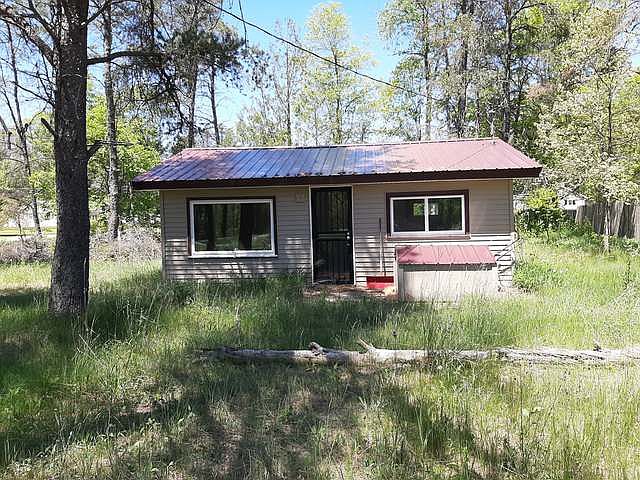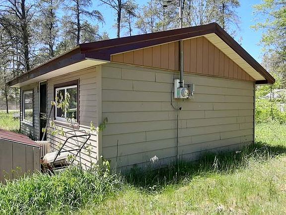 Up north cabin with trail head down the street. 1 bedroom cabin with new vinyl siding, steel roof,windows, insulation, wiring, drywall flooring, electric heat too.Kitchen and bath need finished. Water well on site. Great corner with ample parking.