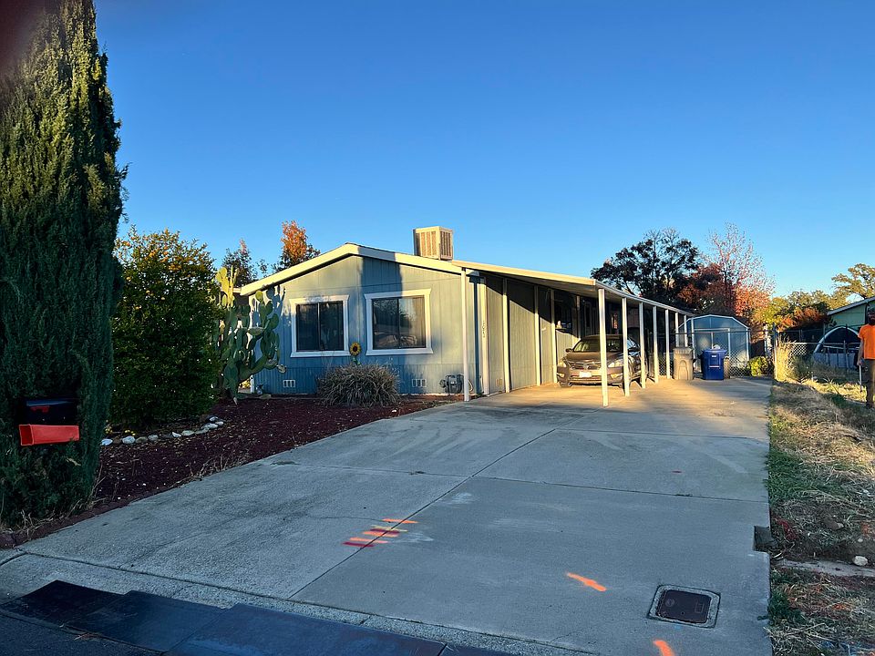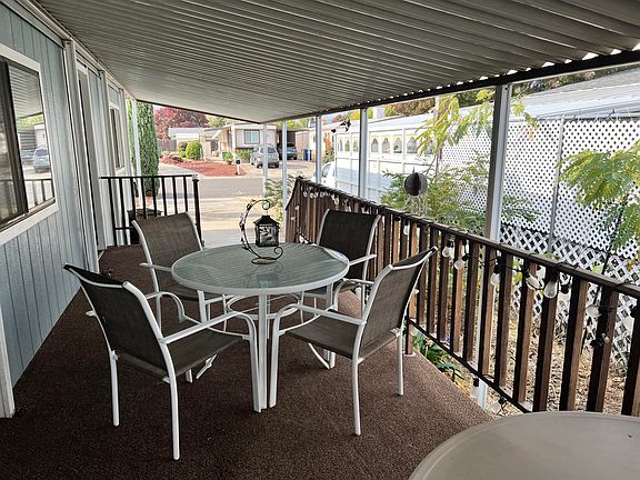 Mobile on permanent foundation. An adorable, well-maintained home, with high vaulted ceilings provides a spacious feel for 2 bed, 2 bath gem. The oversized patio is perfect for a swing and full-size table to enjoy morning coffee. Plenty of cabinets in the indoor laundry room includes washer and dryer. back yard space with a shed, completely fenced; and rocked front yard for low yard maintenance. HOA only $75.00 per year and NO Mobile Park monthly dues. What a STEAL!