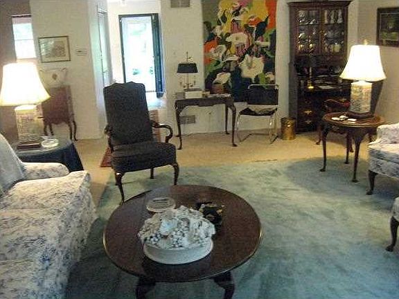 The rear deck with awning overlooks the woods and stream at the bottom of a small hill. Refrigerator, smoothtop electric stove, fanhood, dishwasher, stackable washer/dryer, window coverings, window a/c all included. 5' crawl space is where the furnace, air cleaner and hot water tank are located. Floored attic space. Home has 1616 square feet. The third bedroom could easily make a great den or office.