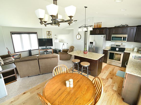 LOW SPECIALS! 3 stall garage, 4 bedroom/2 bath, upgraded kitchen cabinets with crown molding, island counter tops, hardwood flooring in kitchen/dining. Vaulted ceiling in living area & entry, recessed lighting. Close to schools, wellness center & hockey arena on the south end of town.