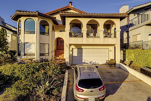 Point to Point Ocean Views Lovely upslope lot near top of Pismo Heights. Backyard is mostly level & very useable, perfect for your entertaining, pets, gardening, etc. Finished media/theater room, den or work-out room off garage with built-in equipment. $950,000