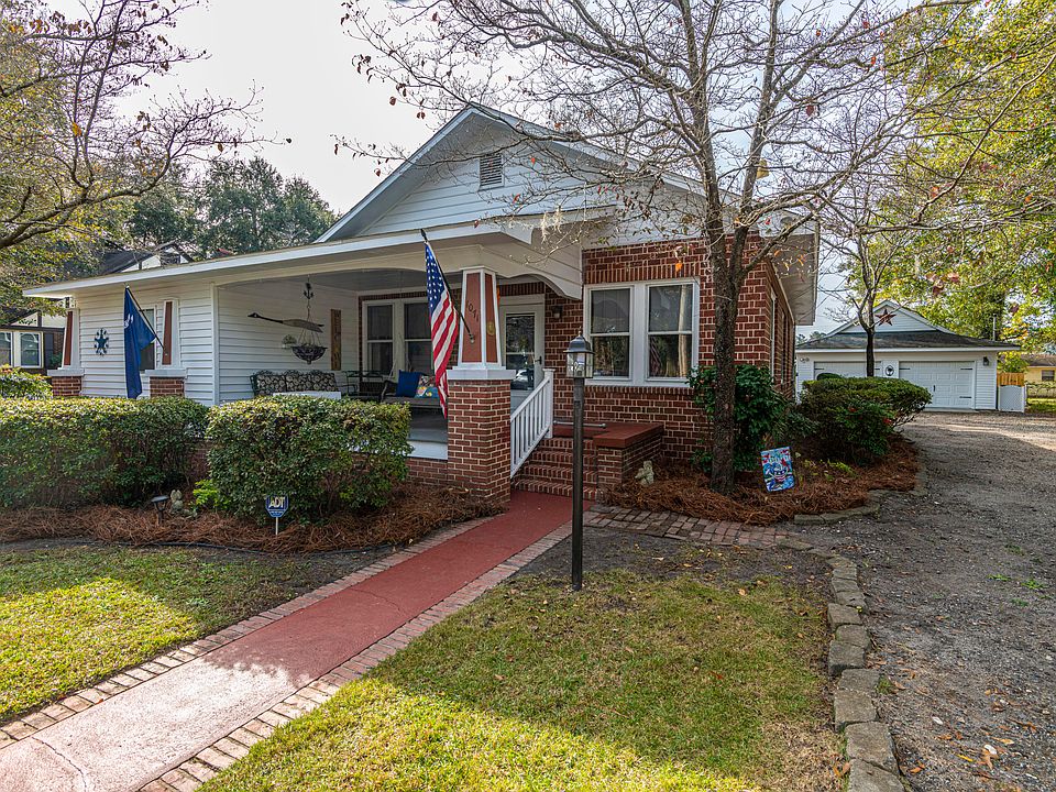 This charming craftsman cottage in town sits on a 1/3 acre with an oversized 2 car detached garage. The large and welcoming front porch is a perfect spot to relax and unwind. Enter into the cozy living room with fireplace and notice many original details including hardwood floors, bead board ceilings,, interior doors and hardware, and picture rails. Spacious formal dining room for family dinners and entertaining. The kitchen has been updated with granite counters and stainless appliances. and has a light and bright breakfast nook. The master suite features a fireplace, walk in closet, and a sunny sitting room with outdoor access. It's master bath has a separate shower and whirlpool tub. Off the center hall are 2 secondary bedrooms, one with a fireplace, and a full bath. Ample space on the back deck for barbequing. Great sized yard partially fenced with a quaint side yard garden. Storage shed will also convey. Plenty of parking and room for a boat or camper. Newer roof and HVAC. This is the quintessential white picket fence home!