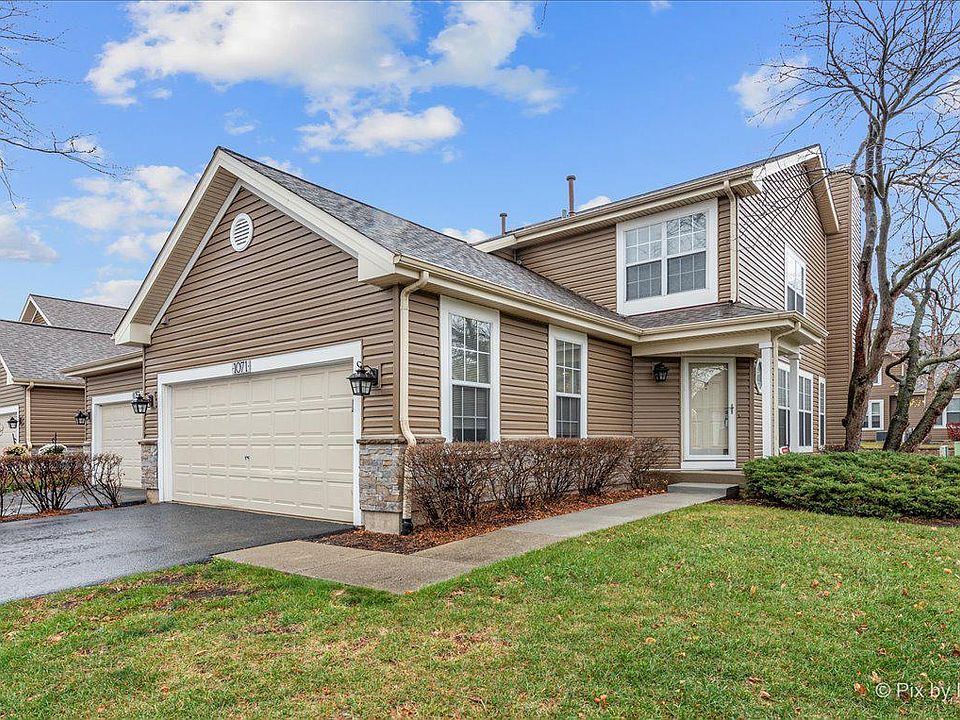 Don't miss out on this! Rarely available 2-story townhome with 3 bedrooms, 3.1 bath with full finished basement! The townhome features a great open floor plan, wood laminate flooring, neutral paint thru-out. Updated Kitchen offers newer cabinetry, granite countertops, stainless steel appliances, adjacent to Family room with cozy fireplace. Upon entering you are greeted by a very spacious Living/Dining room, with a main floor laundry room. Master suite with soaking tub, separate shower, double sink and walk-in closet. Second floor has 2 additional bedrooms with full bathroom. Full finished basement with a full bathroom perfect for entertaining. Heritage lake is across the street with walking path . Shopping, retail, restaurants, elementary school, forest preserve are all within 2-5 miles!