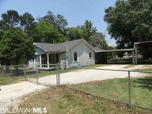 Aluminum sided cottage. Living Room, Large Family Room with Fire Place. Lovely fenced yard includes a very large Fig Tree. Central HVAC. Double Carport plus RV Port. 2 Storage Buildings. Needs repairs and updates. Subject to Alabama Right of Redemptions Laws.