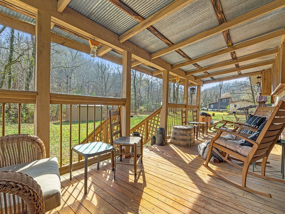 Come see your storybook getaway, engulfed in the cozy ambiance of a classic log cabin. The interior boasts a warm and inviting atmosphere with exposed beams, hardwood floors, and a stone fireplace, creating a perfect blend of comfort and rustic charm. Enjoy the peace and tranquility of lake living with close proximity to Center Hill Lake and all of its amenities. Incredible rocking chair covered porch with plenty of room for a hot tub - the outside shower is perfect for hosing down after a day on the water. Don't miss the chance to make this charming property your own slice of paradise.