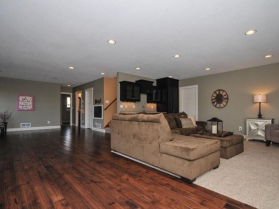 Newer walk-out ranch offering open concept. Almost 2800 sq. ft. w/maple hardwoods on main and hand-scraped dark hickory in lower. Wet bar, tiled baths, deck & patio, main floor laundry, private master bath & custom walk-in closet. Also featuring a gigantic 3-car garage. A total of 4 bdrms/3 baths. Lower level is plumbed for in-floor heat and plumbed and wired for future fireplace in two locations.