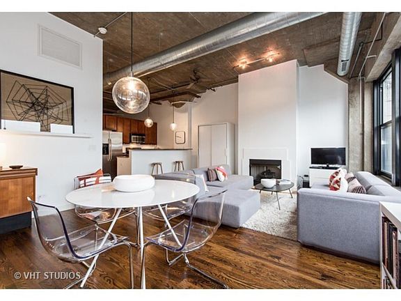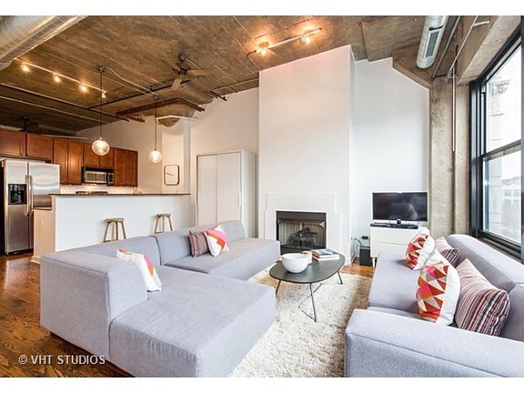 This property boasts an open floor plan, 14ft ceilings, 2 bedrooms, plus a fully enclosed den with a door & closet, that could also function as a nursery, guest room or office. Price includes an indoor parking spot, internet, cable, and DVR! This contemporary unit features dark stained hardwood floors in the living, dining & kitchen areas, custom lighting & ceiling fans in every room. The kitchen features pendulum lighting over the breakfast bar, granite counter tops & stainless appliances. The bedrooms have been upgraded with Elfa closets systems, Ikea wardrobes & newer carpeting. The master bedroom is ensuite with a walk-in shower & walk-in closet. The huge windows allow a ton of natural light! Incredible common roof deck with tables, grill & killer skyline view! Complex has outdoor Swimming pool. Located by Pilsen, Little Italy, UIC, Greek Town, Downtown, Buses, Blue Line, Expressways, Mariano's, shopping & ICON theater