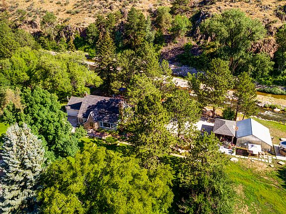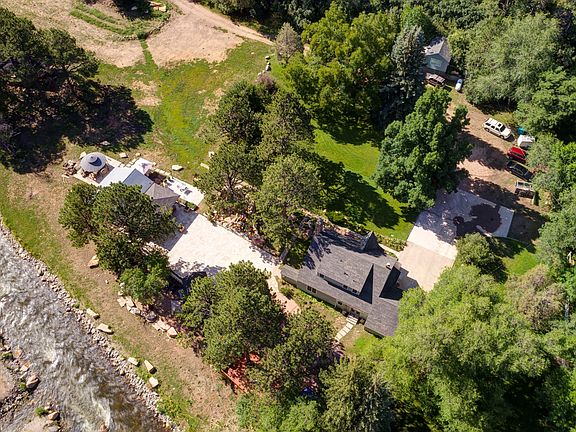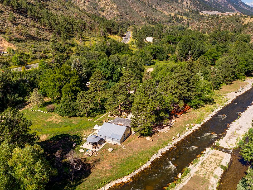 This one-of-a-kind 6-acre property boasts spectacular views of the Big Thompson River and the Rocky Mountain Foothills! Turn off of Highway 34 and drop down into serenity in this Hidden Valley. The incredible Loveland location is park-like and peaceful while still offering easy access to all the amazing things the growing Northern Colorado community has to offer. Just a few minutes from Rocky Mountain National Park! Own over 700 feet of the Big Thompson! The river and the beautiful stone mountain behind the home keep the property cool in summer. The property hosts a lovely three bedroom, two bath Tudor style home along with two separate one bedroom, one bath guest homes complete with living areas, kitchens and laundry machines. With great rental history on websites such as VRBO, Airbnb, and Homeaway, this property is perfect for a primary residence, multi family compound or vacation rental property or Bed and Breakfast. The property is also a great place to host weddings and company retreats. Relax on the expansive riverside deck and enjoy the sights and sounds of the water. Prepare Artisan pizzas in the outdoor wood burning pizza oven or take a soak in the enclosed hot tub. Prepare a feast in the gazebo on the massive Argentine grill. The huge outdoor Japanese pavilion with a gong is excellent for entertaining large gatherings. You will never want to leave the gorgeous grounds with multiple patios and a beautiful water feature which adds to the cool and comfortable setting. The property offers tons of storage including a 200 square foot building that could be used as a storage shed, office, gardening shed or playhouse. The man that built the house was a West Point graduate. His knowledge of engineering is reflected in the construction. His wife brought an acorn from Arlington National cemetery planted it in a pot in the kitchen window and today it is the beautiful huge oak tree in the front yard. Take a tour today!