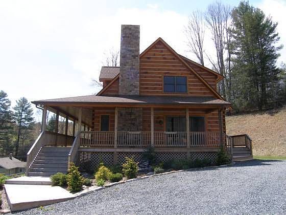 Fantastic like new immaculate log cabin in the Valle Crucis area! Situated on a gentle 1 acre lot with beautiful valley views! Some features of this stunning cabin include spacious open great room,vaulted tongue and groove ceilings, a gorgeous floor to ceiling wood burning stone fireplace, maple hardwood floors, fantastic open kitchen with granite countertops and upscale appliances, Private spacious master suite with large walk-in closet, jetted tub, separate shower and double vanities, large...