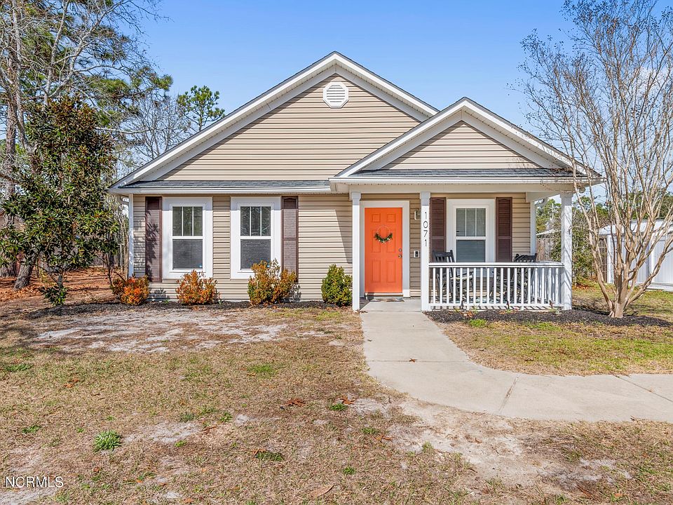 You'll find your new home nestled on a cozy lot in Boiling Spring Lakes that is close to everything! From the moment you pull onto the paved driveway, the cheerful front door and inviting porch will make you feel right at home. An open concept makes it easy to interact with guests and neighbors while preparing meals in the well-equipped kitchen or while spending time with loved ones in the living area. The living space leads to a spacious fenced-in backyard, with a patio built for entertainment or relaxation, allowing you to take in the nature and scenery that surrounds you. Retreat and unwind to the large owner's bedroom with ensuite. Two additional large bedrooms, hall bathroom, and laundry room complete this comfortable home. There is a storage shed that is perfect for storing lawn tools and water accessories. The convenient location of this home is just a short drive to the beaches of Oak Island, and close to Hwy 17 for an easy commute to Wilmington and beyond. The city amenities include: Community Center with Fitness Room (additional cost), basketball court, boat ramp, tennis court, picnic grounds, trails, playground and 18-hole golf course. You cannot beat the location and value of this delightful home!