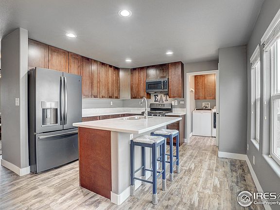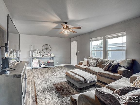 Completely move-in ready! You will be amazed by the exquisite details and upgraded amenities that this home offers including: a full kitchen remodel with solid surface countertops and luxury kitchen appliances, as well as renovated bathrooms, LVP flooring and freshly painted walls throughout. The exterior offers custom garden beds, fresh paint, a large 10x12 storage shed and views of the pool! The $776 lot rent includes swimming pool, fitness center, playground and clubhouse access and is conveniently located near I25 and Hwy 119.