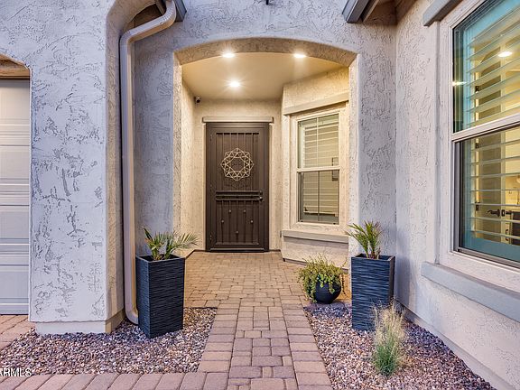 Welcome to your luxurious home in a gated, Eastmark community. This gorgeous 4 bed, 4 bath home with a bonus flex room, features an open floor plan adorned with elegant plantation shutters, offering both style and comfort. Enjoy the gourmet kitchen upgrade, equipped with a pot filler, gas stove top, high-end stainless steel fridge, and stunning quartz countertops. Have the luxury of a private pool with no neighbors behind you, outdoor built-in grill, perfect for hosting guests. The guest quarters is complete with a bedroom, full bathroom, living room and kitchenette, adds flexibility to accommodate various living arrangements. Plus, the added convenience of garage cabinets with full work bench makes this home a true masterpiece of both style and functionality. The Eastmark community offers a relaxing pool, fitness facility, parks, coffee shop, many resturants near by and an abundance of organized clubs. You will also enjoy community events such as the holiday celebrations, concerts in the park, and so much more.