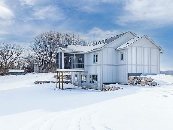 Newly-built Rambler on a spacious 5-acre lot with a GIANT 64x52 pole shed and no expense spared! Starting on the main floor you have tongue and groove vaulted ceilings, knotty alder kitchen cabinets and granite countertops, white oak hardwood flooring, custom built-in storage in the mudroom, and an oversized 2 stall garage. Full appliance package, including washer and dryer, and custom tiled bathrooms with quartz countertops! The lower level has the family room with walk-out and 3rd bedroom finished, flex space that could become a 4th bedroom, and a rough-in for an additional bath! Fully drain tiled, radon proof venting, boulder retaining walls around the exterior, and Anderson 400 series windows throughout. Don't forget the expansive outbuilding with 3 garage doors and over 3,300 sq ft of storage!