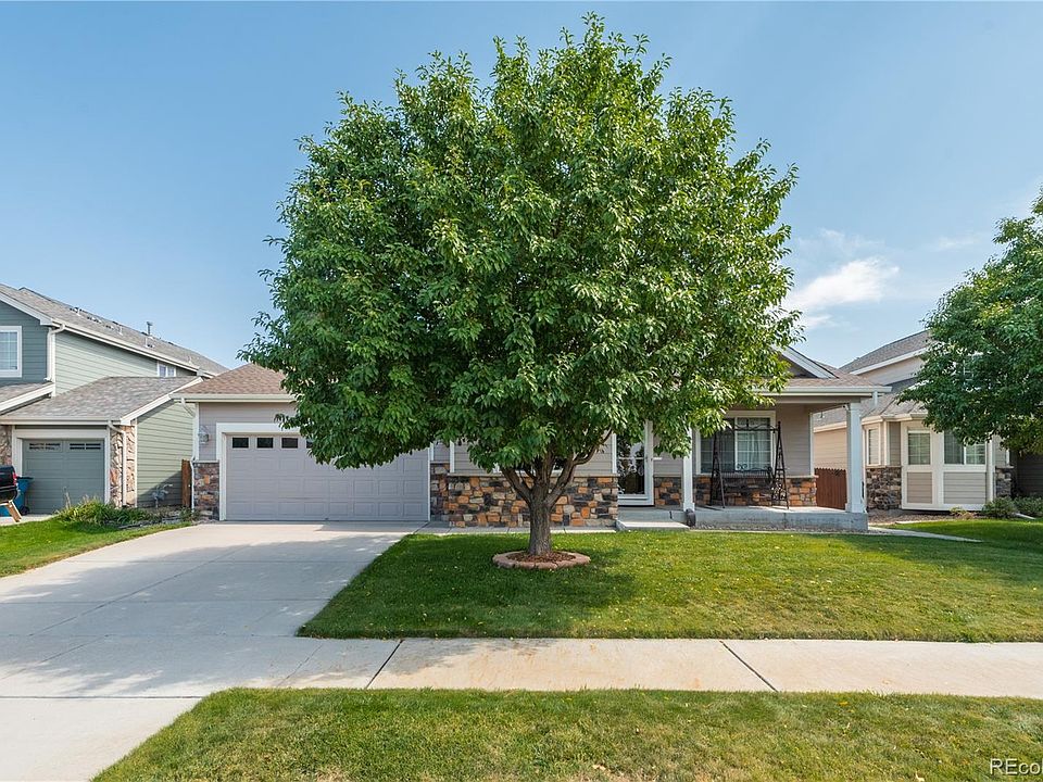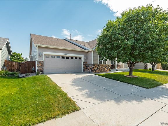 Fantastic 3br/2ba single level ranch home living in the vibrant community of Reunion. Located in Commerce City, this home is just blocks to miles of recreation trails, the charter school, community pools and amenities, parks and golf courses. With easy access to DIA, Denver and the surrounding areas, this home is perfectly situated. The covered front porch makes for a welcoming entrance to over 3500 square feet of comfortable living and beautiful interior details. Formal living and dining rooms have vaulted ceilings and large windows looking to the front yard. The great room concept combines the family room with gas fireplace and well-equipped kitchen creating a pleasant gathering area. Gorgeous hardwood flooring, high-quality appliances with stainless range and fridge, wood cabinetry and tile counters gives the chef plenty of working space. The walk-in pantry and island add to the functionality of this kitchen. A sliding glass door off of the large eating area leads to a deck and stairs to the fully fenced yard with lawn and shade tree. There are a total of 3 bedrooms including the beautiful master suite with attached 2-sink vanity, large soaking tub, shower, and expansive walk-in closet. Two additional bedrooms offers options for guest, office or sleeping space, and the second full bathroom is handy with a 2-sink vanity. A laundry room with utility sink acts as a pass through to the large 3-car tandem garage and sun-facing driveway. The unfinished full basement is ready for entertaining or living space customization. Whether the goal is to buy a first home, add to investment portfolio, or to downsize, this beautiful home will meet the need.