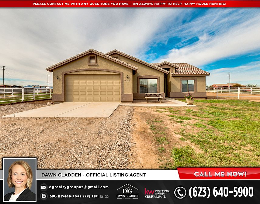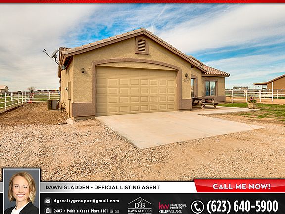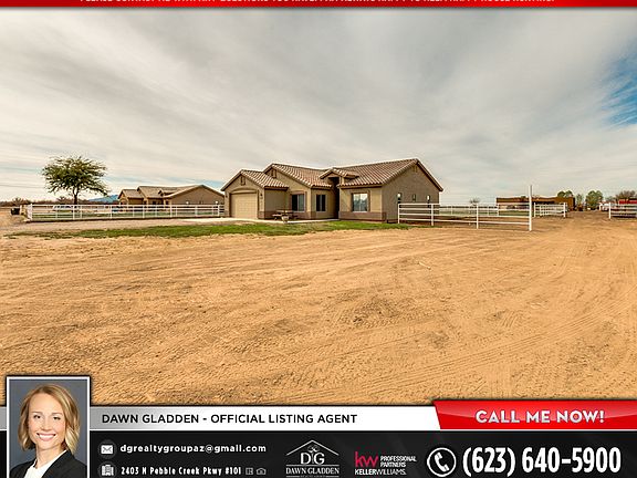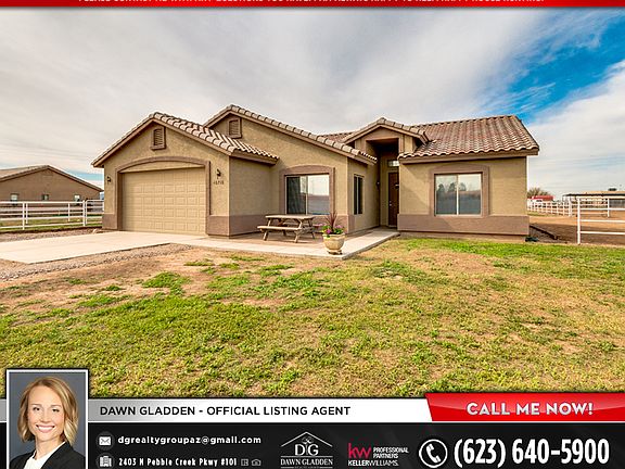 Hurry and see this spectacular 3 bed, 2 bath horse property now for sale in Buckeye! Home features a 2 car garage, vaulted ceilings, and designer paint all in a custom built quiet country setting. The elegant kitchen offers ample cabinet and counter space, a walk-in pantry, matching appliances, and a convenient breakfast bar. The stunning master bedroom boasts a beautiful bay window, a full bath with his and her sinks, separate tub and shower, and a spacious walk-in closet. The backyard features a cozy covered patio and an expansive corral perfect for horses with 3 separate corrals to keep animals apart! The mountain views are breathtaking and the sunsets are even better!! Don't let this incredible opportunity slip by, schedule a showing today!