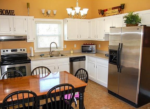 This cute rancher sits on over an acre lot and Is well maintained. The living room and hallway have bamboo hardwood floors. The kitchen and bathrooms have tile floors as well as new carpet in the master bedroom and 3rd bedroom. The 2nd bedroom has a built in elevated bed that will convey or can be removed. Updated plumbing and lighting, kitchen with new stainless appliances and cabinets with a fresh coat of paint. This house is move in ready with low-E double pane insulated vinyl windows that were installed 1/2014 with a lifetime warranty that transfers. The water heater was replaced 3 years ago, New roof with 30 year dimensional shingles. There is a water filtration system, and conditioned crawl space! There also is a detached garage/workshop with electricity and tons of lighting as well as storage above. The pool/pump and swingset will convey as-is. So many nice features on this house, you must see it in person!!!