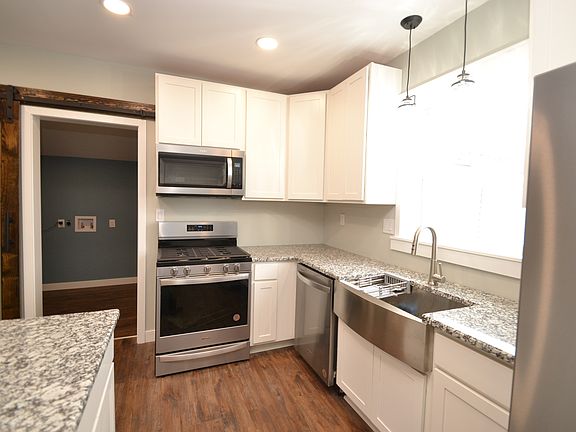 Extensively remodeled 4 bedroom, 2 bath home on 1.26 acres. Huge attached garage. Propane gas heat and central air. Big covered front porch.