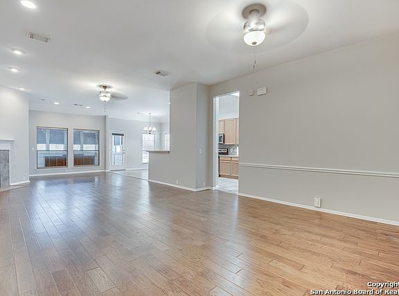 Located in the desirable community of Iron Horse Canyon @ Stablewood. This well cared for 1 story home sits on beautiful cul de sac lot. This home features rich wood floors, open concept living, high ceilings, fresh interior paint, and thoughtfully placed windows. Kitchen overlooks a spacious family room with tiled fireplace. A generous owner's suite offers a tray ceiling, walk-in closet, plus spa-like bath with dual vanity. Relax in the bonus patio room that is fully insulated and enclosed, adding another approx. 250 SF of living space. Easy access to 1604 and plenty of shopping and restaurants near by.