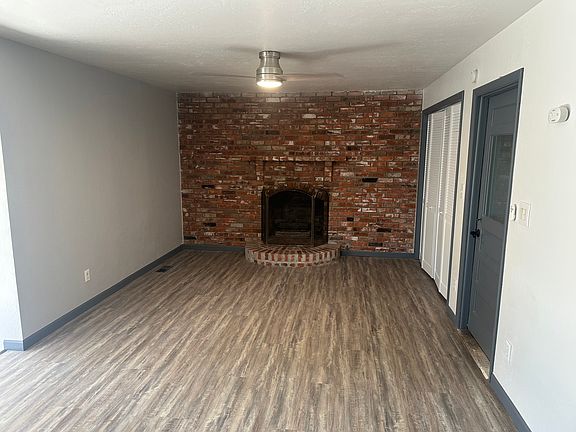 Step inside to discover two spacious living areas, one featuring a charming brick fireplace that creates the perfect setting for relaxing evenings or entertaining guests. The updated kitchen boasts sleek granite countertops, stainless steel appliances, and ample cabinetry, making it both modern and practical. The bathroom has been tastefully renovated with contemporary fixtures and a tiled shower, adding to the home's appeal. Large windows throughout fill the space with natural light, highlighting its fresh and inviting design.