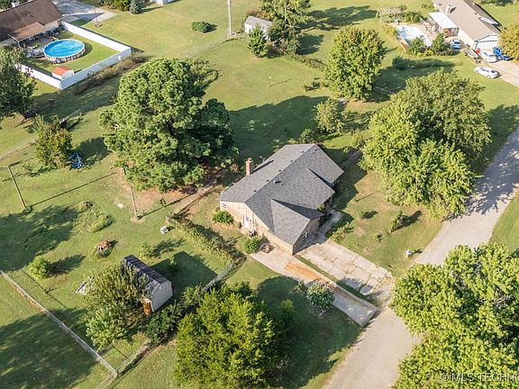 Rare find! This beautifully updated 3 bedroom, 2 bathroom home on just over an acre is served by Verdigris Valley Electric and offers upgrades throughout. Step inside to an open layout with a cozy fireplace and engineered hardwood flooring in the living room, dining room, hallways, and hall bath. The living spaces now feature a more open concept with a beautiful arched entryway that creates a seamless flow through the main areas. The kitchen includes an eat-in bar, sunny breakfast nook, and new cabinets with updated hardware. The primary bedroom includes its own bathroom, a spacious walk-in closet, and a charming bay window that fills the room with natural light. The hall bath has been renovated with a new soaking tub and tile walls for a fresh, modern look. A large game room provides plenty of flexible space for movie nights, game days, or hobbies. Other updates include fresh carpet in all bedrooms and the game room, updated interior doors, new light fixtures in the dining and entry, new ceiling fans, a new electrical panel, and a whole-home indoor/outdoor surge protector. Outside, enjoy a spacious fenced backyard with a patio and an almost brand new 10x20 shed — perfect for storage, a workshop, or extra hobby space. With over an acre to spread out on, this home offers space and privacy while still being a short drive to town and conveniently located near the turnpike for an easy commute to Tulsa or Owasso. Schedule your private tour today and come see all this home has to offer!