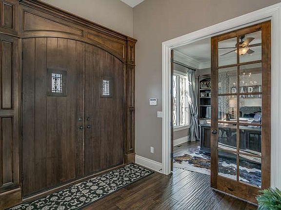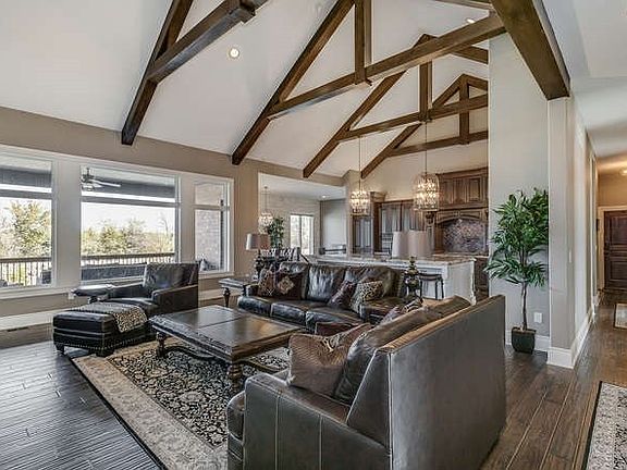 Location, Location, Location...This beautiful custom home in the gated Residences at Waterfront community is just seconds from the best dining, shopping, and entertainment venues in East Wichita, and around the corner from the Wichita Collegiate School. The home is situated on the largest and most private lot in the community, backing north to the red bud trail with mature hardwoods and evergreen trees. Imagine enjoying an evening on the covered deck looking out at a beautiful light show from your lagoon-style Gunite pool or soothing away the stress of the day in the attached whirlpool spa overlooking a roaring fire in the immense stone and brick outdoor fireplace. This home offers custom details which are sure to please the most discriminating home buyer with exotic granite, quartz, and marble throughout, hickory wide-plank and hand scraped flooring, designer tile and carpeting, and 8 foot alder interior doors. The kitchen boasts an 11 x 5 thick-cut granite center island, custom cabinets, glass tile back-splash, a walk-in pantry, and pro-style appliances. The ownerâs suite is to die for with a hand-painted wall, deck access, gorgeous views, and a spa-like bath with his and hers toilet rooms, a large soaking tub, an enormous double entrance shower, and even a separate make-up room/beauty bar! The master suite also boasts his closet with a built-in dresser, shoe shelves, and a bench and her closet with five tall dressers, luggage packing platform, shoe bench, large custom mirror, extensive additional accessory storage, and more than 120 linear feet of hanging space! The main level also features two additional bedroom suites with private baths and walk-in closets, a mudroom and laundry room with loads of storage, a hand-painted powder bathroom with furniture style vanity, an office with handsome wood built-ins, a hand painted formal dining room with a dramatic over sized crystal chandelier, a casual eat-in kitchen dining area, and a great room with a barn-style ceiling trimmed with enormous custom wood beams, custom wood bookcases/entertainment center, and an impressive towering Texas limestone-faced gas fireplace. Donât miss the view-out lower level with three additional bedroom suites, all with attached bathrooms and walk-in closets (one trimmed out as a gym with rubber floor and mirrored walls), a well-appointed powder bathroom with furniture style vanity, a custom wood bar with pro appliances and custom wine storage area, a large billiards room connected to a spacious casual living area with a modern linear gas fireplace and access to a covered patio with a beautiful stained concrete floor. The lower level also has a concrete encased storm shelter with a steel door and expansive unfinished storage areas. This home was built with extensive technological details including security cameras covering the entire property, zoned intelligent HVAC, and wiring for every entertainment and technology possibility you can imagine. Donât miss the oversized 4 car garage and outdoor lighting details. Suffice it to say, there are too many details to mention here, so if you are serious about finding your dream home, schedule an appointment today!