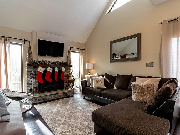 Stunning 3 bedroom, 2 bath contemporary home situated on a wooded lot overlooking a creek! This home features an open floor plan with soaring vaulted ceilings and large windows allowing natural light to flow throughout. The living room boasts a cozy fireplace flanked by tall windows and also has a door that leads out to an extra large deck overlooking the back yard area making this home a fantastic place to entertain guests. Upstairs you will find a large master suite with a private balcony offering an even better view of the back yard and creek area. This home will not last long - Schedule your private showing today!