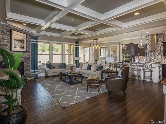 Stunning Worthington in lovely New Castleford! Walk to Waverly! Grand Stone & Brick Exterior. SS built in KitchenAid apps w Luxury Island, Patio, Private guest suite down & Study/Library down, Fireplace, Hardwoods, Granite, Full sod/landscaping & irrigation, luxury owner's w Sitting Rm, Gamerm on the second floor plus 3rd Floor Media Room/Rec!!, 5/6 bdrms & 5 baths. Great site, backs to open common space! Lovely full brick estate community off Tilley Morris & Ardrey Kell. Pool/cabana! Schools!