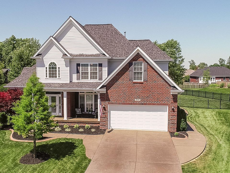 Beautiful, Convenient location, Well-maintained- this wonderful Five-Bedroom Executive Family Home in Bardstown Woods will check off every box on your list! Located on one of the largest lots in the subdivision, this stunning home is nestled in the middle of a quiet court. When you walk through the leaded glass front door, you'll see the pretty Formal Dining Room to the right with decorative column and wainscoting and plenty of room to seat 10 guests for dinner. The two-story vaulted Great Room has a gas fireplace with marble surround and a door to the covered deck. There is an angled peninsula between the Kitchen and Great Room which keeps you involved with your guests while preparing meals in the large Kitchen that has newer Stainless Appliances, and plenty of cabinets and counter space. Just off the Great Room is the huge Master Bedroom with windows to the back yard to let in plenty of light. A jetted tub, newly remodeled tile shower and double vanity are waiting for you to have a spa day in the Master Bath. A room-size Master Closet has plenty of shelves and hanging space for all your clothing needs. On the other side of the kitchen is the door to the two-car garage and a coat closet, then a conveniently located laundry room with built-in cabinets. Tucked away down this hallway is the second bedroom with a large closet and is just a couple of steps away from the full bath in the hall, making it very convenient and private for guests. On the second floor, there are three large bedrooms all featuring walk-in closets and ceiling fans with lights. There is a Jack-n-Jill type full bath that is L-shaped to provide direct access from the back bedroom with one vanity and a private tub/shower area; or the other area has a 6 ft. double bowl vanity that enters from the hallway. The unfinished Basement needs only your imagination to make it your dream entertainment area and there is plumbing roughed in for a full bathroom. But the real WOW factor for this home is the back yard! Just last year, the Sellers renovated their outdoor deck area and installed all new tile flooring for the double level deck, the areas surrounding the deck and the pool, and all new deck railing. The area is covered and has curtains installed as well as an outdoor television. The Sellers have so enjoyed the in-ground pool that they hate to leave that most of all! Other notable updates include a Retractable Screen Door and Ceiling Fans in the Garage "Man Cave", and a front yard irrigation system. Don't wait to see it or it will be gone! Make your appointment now and you can be calling this beauty Home before fall!