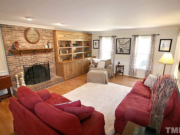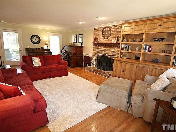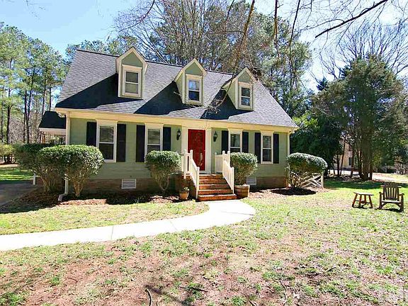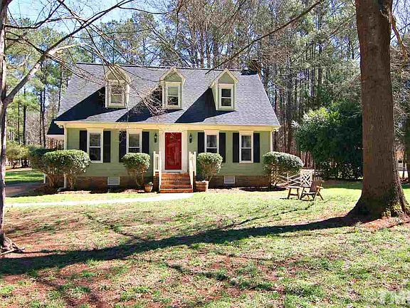 Charming Cape Cod, 3BR,2.5BA on .92 acre lot in North Raleigh! Granite counters, Stainless Steel Appliances, Hrdwds, Brick F/Place, Formal DR, Built-in bookshelves! 3 Season Porch overlooking brick patio and fenced yard. Storage Shed. Cut-de-sac. No HOA! Minutes to I-540 and Falls Lake! Sweet!