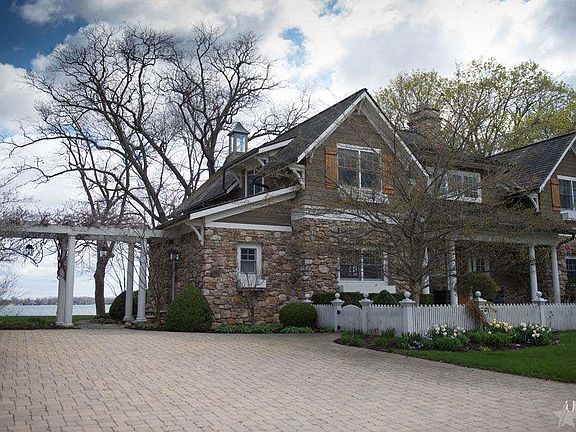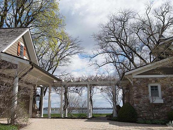 This estate on Lake Wawasee includes the beautiful stone & cedar shake home, a garage connected via a pergola, a lake-side changing area & powder room. It also includes 150 feet of lake frontage. A driveway leads to the detached garage with pull-down attic access. The home's side entry opens to the mudroom/ large laundry room. Ten foot ceilings and 8 foot doors create the most wonderful look. Just around the corner from the laundry room is a desk area and the open concept living area, including the kitchen, breakfast area and hearth room. The galley style kitchen offers the perfect setup for family events and parties. With custom cabinetry & Corian countertops, the kitchen is as functional as it is beautiful. With a grand stone fireplace, the hearth room can accommodate multiple seating arrangements and can open further via the triple French doors to the lake-side garden room.This main level also has a pine library with a walk-in closet, custom cabinetry, and a private entrance into the master bathroom. The dual-vanity bathroom has a Culligan drinking water system and a very large walk in closet. Upstairs, a landing offers built-in bench seating and a wonderful wall of bookshelves. Bedroom #2 has a built-in loft with closet space to the sides and below, and more than enough room for a few single beds. An upper level family room has sliders to the wide lake-side deck, a game area and a great deal of space for a large sectional and built in book shelves. This secondary landing area is central for all the upper level bedrooms. Bedroom #3 is a "lake view room" with an attached full bathroom. Bedroom #4 takes on the shape of the roofline, has an attached full bath, and overlooks the lake. Bedroom #5 has a bit of a private entrance with a large walk-in closet, private bathroom and a bonus room. The finished lower level has a noteworthy bar made of a wooden Chris Craft boat. The steering wheel and control panels remain a part of the beautiful and functional bar. The bar is open to the kitchenette and the family area, shake walls with hidden storage rooms, and tage rooms, and the attached game room. The ping-pong area is adjacent to the fitness area with an attached full bath. This home even offers a "safe room" next to the pristine utility room. GAS$115/ELECTRIC $303