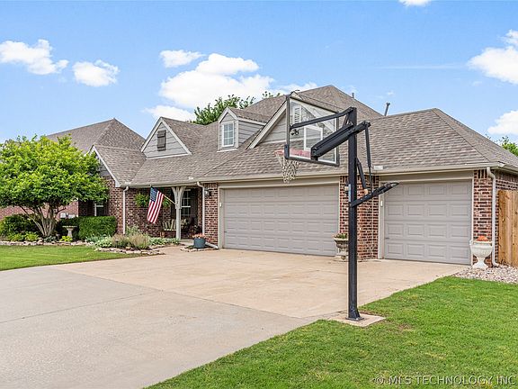 Step inside to find the living space graced with new white oak floors, giving it a modern and fresh look. The kitchen boasts new cabinets with custom sliding doors, new granite countertops, as well as new tile on the kitchen floor and backsplash. With a 3-car garage, there is plenty of space for parking and storage. An inground storm shelter was added for peace of mind. Don't miss the opportunity to make this beautiful home yours and enjoy the tranquil surroundings of this desirable neighborhood and impeccable location in Jenks School District!