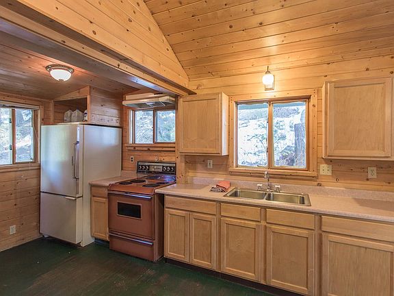 Warm and inviting cabin situated on 1.53 acres. Use as full time living or weekend retreat. Open floor plan, spacious kitchen and living room, dining area, vaulted ceilings, wood interior,built in closets, loft (not full ceiling height) and wood stove all contribute to make this efficiency cabin feel like home. Washer and dryer hookups. Seasonal stream and rock outcroppings. Easy commute to Bldr/Denver/Golden. Newer roof - March 2017.