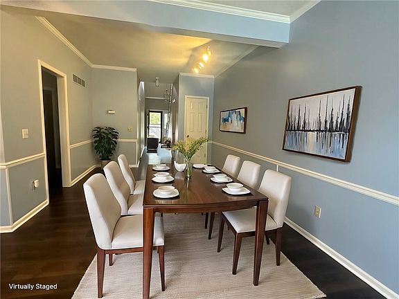 Welcome to Indian Creek Park Estates, where charm meets modern living! This beautifully updated home is full of character and thoughtful details. The soaring ceilings, elegant crown molding, and rich wood floors throughout create a seamless, warm flow. The bright, open kitchen is truly a cook’s dream, offering ample cabinet space, gorgeous countertops, and a cozy breakfast bar perfect for your morning coffee. The dining room is spacious enough for those special gatherings around a formal dining table, while the living room feels extra inviting with its stunning fireplace and mantle as the centerpiece. The updated half bath offers a sleek granite vanity and a chic, contemporary mirror. Upstairs, two generously sized en suite bedrooms each come with their own full bathrooms, giving everyone their own space. The second-floor landing offers a versatile bonus area, ideal for a home office, reading nook, or cozy sitting area. Step outside to your private, fenced-in backyard, complete with a gorgeous travertine patio—perfect for enjoying quiet mornings or hosting friends and family. The roof and HVAC system have both been replaced within the last 5 years, giving you peace of mind for years to come. Plus, the full basement provides ample storage or could be transformed into even more living space down the road. Located in the sought-after Blue Valley School District, this spacious townhome offers easy access to highways, shopping, and dining. With the HOA taking care of lawn care, trash, and snow removal, all that’s left for you to do is move in and start making memories in this lovely home!