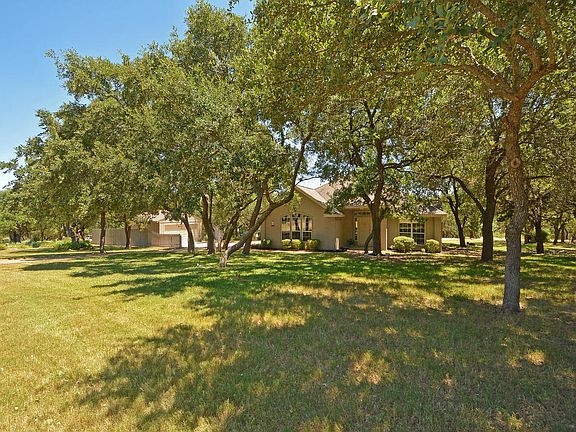 Updated 4 bedroom single-story home on 1.5 acres of oak-covered, pristine hill country land. Serene location with amazing wet weather creek running through back of property. Home was remodeled in 2015 with high end finishes. Plantation shutters in every window! 5 car garage-3 car attached and 2 car detached plus storage building. New roof Aug. 2015. New paint and carpet June 2019. New fencing fully surrounds property. This one you don't want to miss - a real gem! Don't miss the creek, it is spectacular!