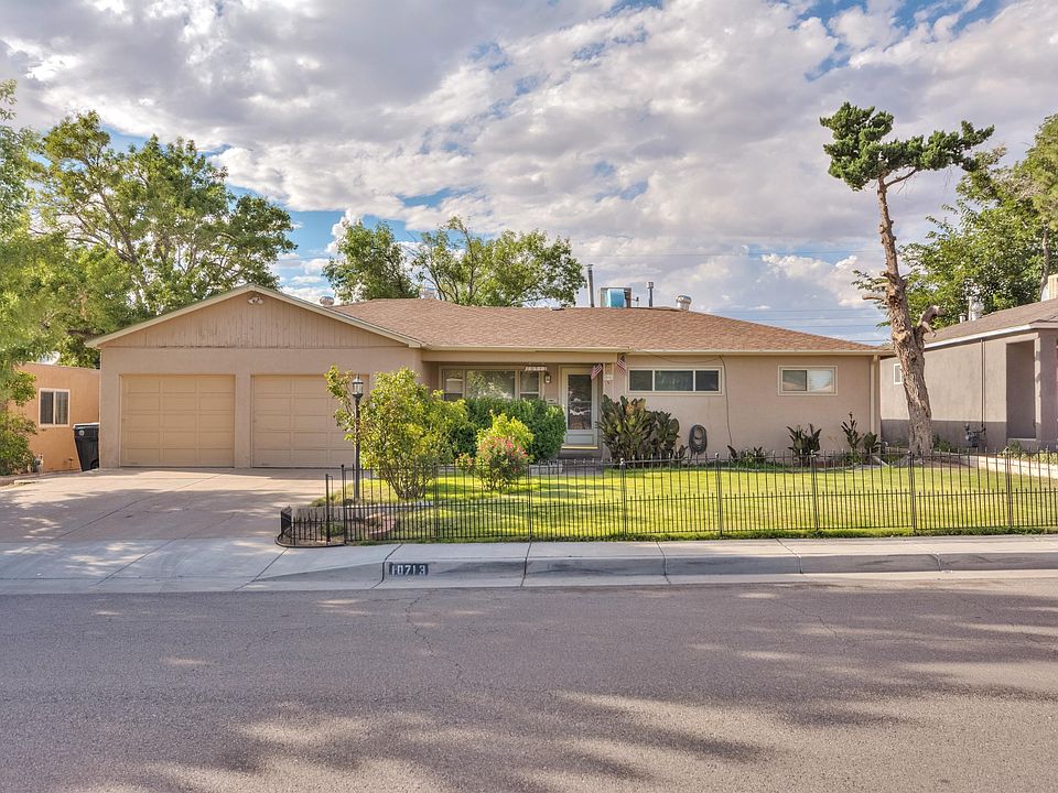 This immaculately cared for NE Heights home is too perfect to last long on the market! The front yard is a beautiful manicured oasis with lush lawn and fencing. Inside you'll be greeted by a flowing floor plan with newer carpet, gleaming wood floors, ample windows and skylights to let the sun shine in! Formal dining room, 2 spacious living areas, a large den, built in shelving, fireplace and 4 bedrooms are just a few of the amenities in this great home! Get your croquet and corn hole games ready, because the back yard is perfect for fun and entertaining. Sandia views, lots of grass, an established shade tree and large, partially-covered patio will make you an instant success for weekend get-togethers with friends! Roof replaced in 2018 and full home inspection completed in June 2019.