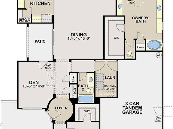 This stunning new home features a courtyard entry, three bedrooms plus a den, three baths and a three-car tandem garage. The kitchen offers an extended center island, upgrade Maple cabinets with an espresso finish and 42" uppers and granite countertops. The open layout seamlessly connects the kitchen, Great Room and dining room. The 20' multi-slide door at the Great Room opens to an expansive covered patio and a pool size yard. The owner's suite is split from the secondary bedrooms and features a luxurious bath with split vanities, a freestanding tub, large shower and an expansive walk-in closet. Other touches in the home include two-tone interior paint, 8' interior doors and upgraded flooring.