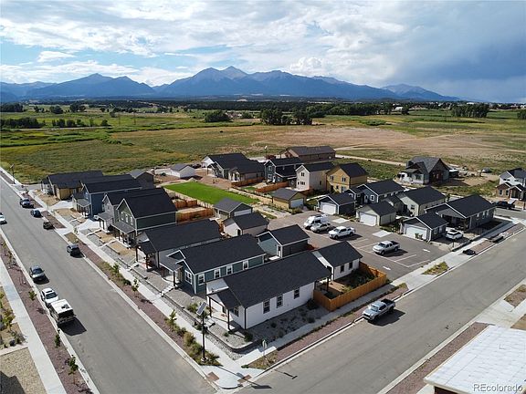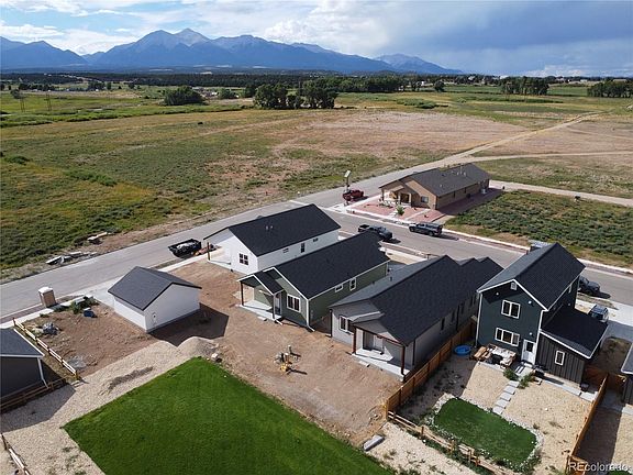Enjoy gorgeous mountain views from a covered rear porch backing to HOA green space. This inviting 3 bed, 2 bath home offers 9' ceilings, quartz countertops, a large kitchen island, stainless steel appliances, 90% efficient gas forced-air furnace, and Central A/C. This floor plan is designed to offer a welcoming, open floor plan. Both bathrooms include tiled surrounds and quartz tops. Enjoy the many benefits of Poncha Meadows including terrific access to hiking, skiing, biking and a short drive to downtown Salida. This block additionally offers owners a private community green space for owners benefit as well as additional parking. 1 year Builder Warranty provided. Seller is a licensed CO Broker.