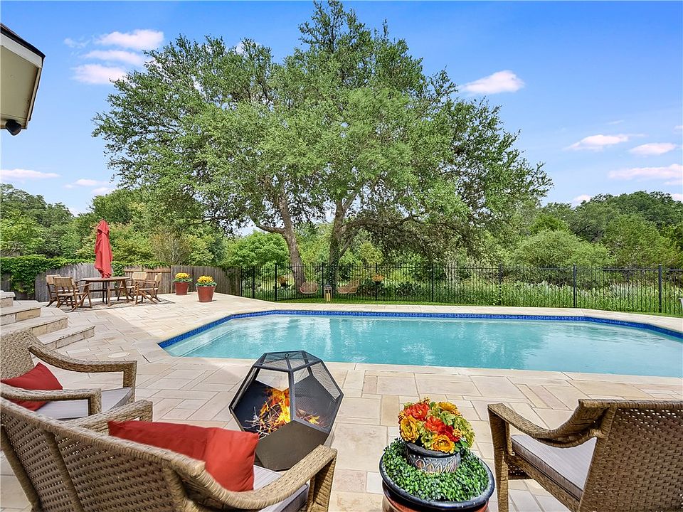 BEST LOT IN AREA! DESIGNER REMODEL w/HEATED POOL, backs 2GREENBELT w/PANORAMIC VIEWS! Walk to Kiker via GB! HERITAGE TREE @entry, FULL of UPGRADES! NEW:Luxury VPlank flooring down, new double ovens & Microwave, Interior Paint & cabinets freshly painted, GIANT PICTURE WINDOW to view new Pool tile. RECENT: Stone terrace, LUXURY carpet, ROOF, TWIN ACs! MASSIVE Primary Suite w/REAL MARBLE: jacuzzi, separate glass shower, 2 vanities &2 WALK-ins. Appliance Package Conveys: Fridge/Washer/Dryer & chest freezer!