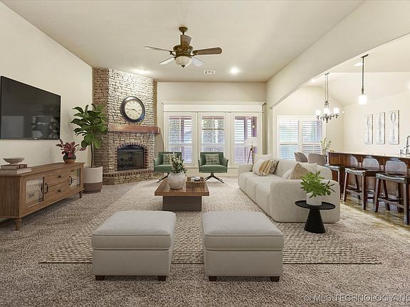 Jenks West Schools! Gorgeous home in gated Brookwood of Jenks. Three bedrooms downstairs, including primary bedroom and bath that includes large walk-in shower, bathtub, double sinks and walk-in closet. Kitchen has large island, stainless appliances, pantry and is open to family room and perfect for entertaining. Second floor has a game room with wet bar, bedroom and full bathroom. This gated community has ponds, playground, walking trails, half basketball court, event pavilion and more. Schedule a showing today!
