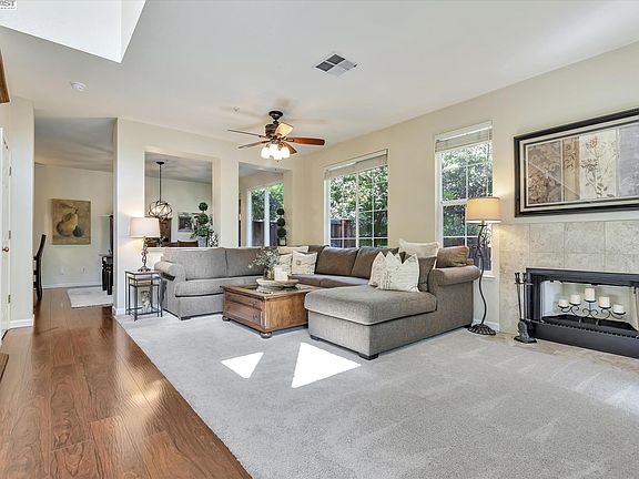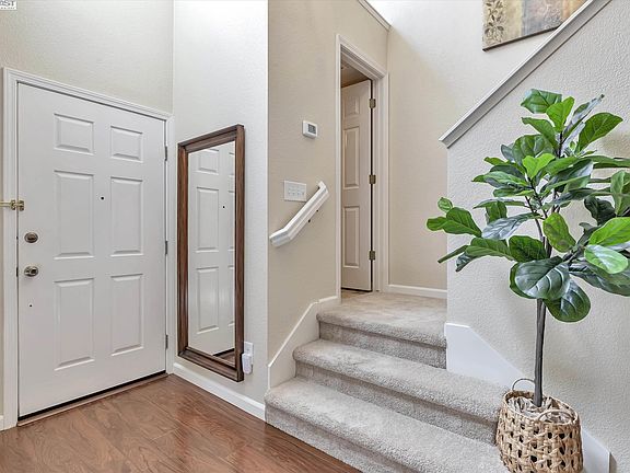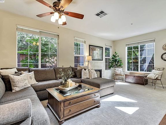 Welcome to a beautiful French-inspired and impeccably cared for townhome in California Highlands. This home offers the largest 3 bedroom, 2.5 bath floorplan in the community. Bathrooms upgraded with new hardwood double vanities, granite counter tops, brushed nickel fixtures, and Travertine tile inspired floors. Laminate floors replicating hardwood in kitchen, dining room, and hallway seamlessly blend with plush Karastan carpet. Newer dark-wood solid maple cabinets in the kitchen, along with gas range and stainless-steel appliances fulfill a chef’s functional and aesthetic dream. East-facing front door and windows invite plentiful natural light. A fully landscaped yard invites gatherings in a secluded, private setting of an end unit. Premium synthetic grass, drip system, and timed accent yard lighting are all maintenance-free. The property is one of the few units in the complex that offers a full, 2-car driveway, offering extra parking spaces for 2 cars in front of the garage. Walking trails within California Highlands and a sparkling pool invite you to unwind and relax. Home is close to 580/680 freeways, excellent Dublin schools & BART station. Open house Sat-Sun 1-4 pm.