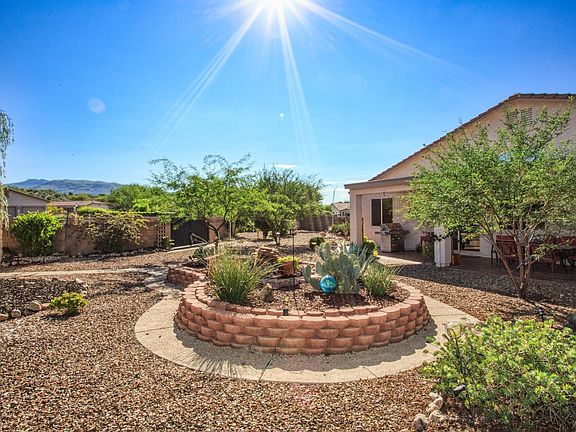 For more information on this property, contact the Listing Agent, Pam Ruggeroli at (520) 954-7138 or Pam@PamRuggeroli.com. Beautiful 3 Bedroom/2 Bath home on large corner lot in gated Rancho Cancion West! Great room floor plan with upgraded tile and laminate wood floors throughout! Bright, open eat in Kitchen with island, breakfast bar, granite counters and plenty of cabinet space! Great room offers cozy fireplace and built in entertainment center! Spacious Master Suite with jacuzzi tub and separate shower! Detached workshop with over 200 square feet of storage and/or work space! Extended two car garage with lots of storage space! Fully landscaped backyard with outdoor fireplace, water feature and fruit trees! This home has it all! Call today for your private showing!