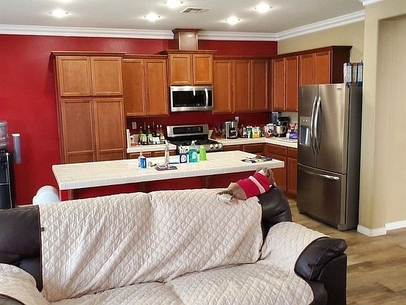 Very clean three bedroom, two bath home. Separate living room, dining room, family room, all rooms are large. Loads of owner improvements, wood tiled floors throughout, crown molding at all living areas, rain gutters, lots of extra cement work & fully landscaped. Stainless appliances including fridge. Three car garage. Fresh paint throughout.