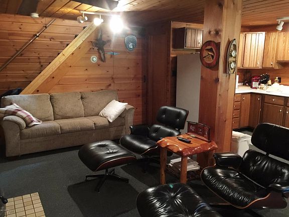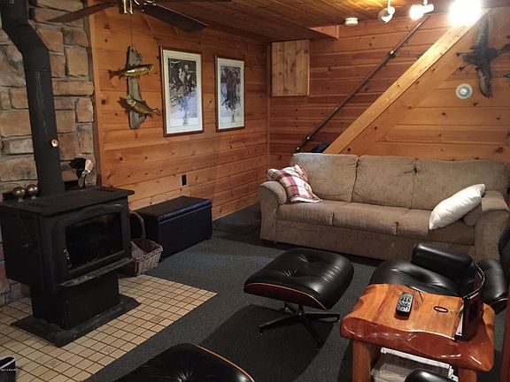 This great find has 102' frontage on the famous Little Manistee River with 3 acres of land well-manicured down to the pond and dock on the river.The cabin has 2 bedrooms on the main floor and a full bath. The finished walkout basement houses the kitchen, dining area, living room and a half bath. There is a woodstove to keep you warm and those chilly nights and the knotty pine interior gives it that great "Up North" feeling! There is a deck off the master bedroom and a screened in porch just off the lower living area and a hot tub area between the cabin and the awesome bunk room. It's ready for your extra family or guest. The pole barn has one garage door and a large slider on the other side offering lots of storage and a lien too off the back which is great for your wood storage!