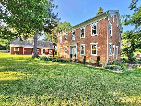 Here is your opportunity to enjoy life in a home with stately character and rich history on 2.5 acres of lush land! The William Ritzman house built in 1847 and restored between 1974-1999 is on the US National Registry of Historic Places. This beautiful brick Greek Revival style home has served as a great family home, vacation/weekend get-away, and all-around wonderful place for gatherings, especially for Holidays! Enjoy a modernized eat-in farm type kitchen, large living room with adjoining parlor with built-ins and a first-floor half bath with laundry. The large master BR has a bath with new flooring, and the main bathroom was just completely renovated! Brand new, tankless, high efficiency boiler and domestic hot water supply. Outside you will love the barn, which has a new full roof and fresh paint, a 400 sq. ft. room that doubles as a theater & exercise area, 8x11 non-conforming summer kitchen, workshop, and walk-up loft for storage! The current owners built a chicken coop w/electricity, a run-in shed for goats, and fenced the adjoining pasture area. Gardens, fresh landscaping, and raspberry bushes are bonuses, and wildlife abounds by the creek and natural areas, including deer, mink, Sandhill cranes and over 48 bird species. See full list improvements in documents section. This one is a must see! ***All offers must be submitted by 5:00 p.m., Sunday, 7/24/22.***
