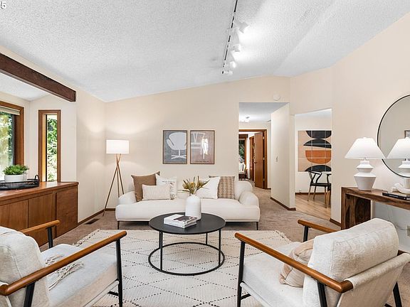Welcome to your serene SW contemporary retreat, where dappled light and nature’s song set the tone for peaceful living. Perched quietly above the street, this thoughtfully maintained and energy-efficient home offers ultimate privacy and charm. Recent updates include fresh exterior paint (2023), a durable metal roof (2018), and a high-efficiency furnace (2021)—all making this home truly move-in ready. Inside you'll find vaulted ceilings and inviting bench seating in nearly every room. A spacious bathroom and a versatile flex space off the kitchen provide endless possibilities—use it as a home office, generous pantry, or even a second bathroom. Conveniently located near Barbur Foods, Multnomah Village, Jackson Middle School, PCC Sylvania, and Lake Oswego plus easy freeway access for commuting or weekend getaways. Think: Sunriver tranquility meets Forest Park beauty—just minutes from everything you love! [Home Energy Score = 5. HES Report at https://rpt.greenbuildingregistry.com/hes/OR10233126]
