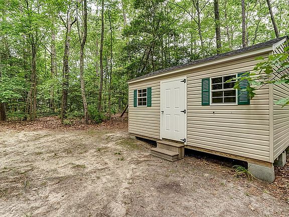 Relaxation and privacy await you in this adorable 4 bedroom, 2 full bath cape nestled on a huge park like cul-de-sac lot (.86 acres!) You'll find cabinets galore in the spacious eat in kitchen with bay window and extra buffet area. Snuggle by the fire in the family room or take a soak upstairs in your private air jet tub overlooking the treetops. Home offers large low profile deck with built in swing and brand new fire pit. The detached vinyl shed/workshop has plenty of room for all your projects with sturdy wood cabinets, brand new roof, a 10' long, well lit workbench, deep utility sink with frost free hydrant, and full RV hookups (water, sewer, and 30/50 amp service). Maintenance is low with rain filters on all gutters and self-watering window boxes. The downstairs bathroom was completely updated last year and new renovations include the following: Brand new roof, new vapor barrier in the crawl space, new paint throughout, new carpet throughout, new stainless steel appliances, new counter tops, new sink/faucet in the kitchen, new light fixtures, and a brand new gravel driveway with tons of parking. This is a must see in Hunter's Landing!