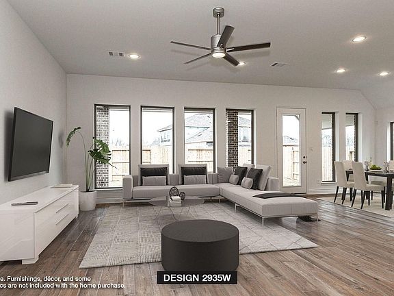 READY FOR MOVE IN!! Home office with French doors set at entry with 12-foot ceiling. Formal dining room and game room with French doors off coffered extended entry. Spacious family room with a wood mantel fireplace and wall of windows opens to kitchen and morning area. Kitchen hosts generous island with built-in seating space and 5-burner gas cooktop. Primary suite includes bedroom with wall of windows. Dual vanity, freestanding tub, separate glass-enclosed shower and large walk-in closet in primary bath. Secondary bedrooms plus a guest suite complete this open one-story design. Extended covered backyard patio. Mud room off two-car garage.