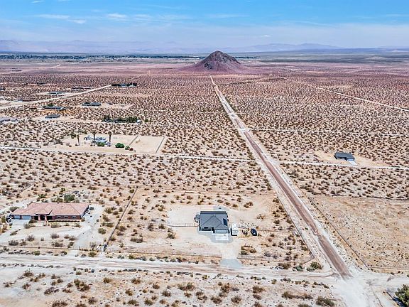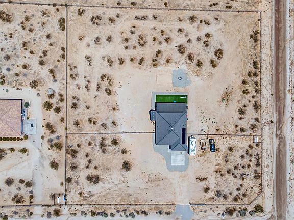 Experience stunning panoramic views from this beautifully upgraded hilltop home, nestled on a 2.5-acre lot just outside of Edwards Air Force Base. This contemporary desert retreat features modern touches, with custom flooring throughout, coffered ceilings, stacked stone backsplash that pairs perfectly with quartz countertops, and a spacious center island-ideal for cooking and entertaining. Step outside to your custom covered patio with stamped concrete, a built-in BBQ station with a service sink, and sweeping vistas of California City. Whether you're enjoying sunrises or sunsets, or stargazing by the firepit, the outdoor space is perfect for family fun and gatherings. Kids can play on the turf lawn, while you relax under the desert sky. Additional features include, paid off solar,50-amp in garage for welding and RV plug outside. This home is fully fenced and cross fenced property lines. Located in an exclusive community of Rancho Estates, you'll be surrounded by desert mountain beauty that blends luxury, privacy, and natural splendor and is -truly a dream come true.