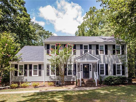 LOCATION LOCATION and Privacy too! 4 bedrooms and 2.5 Bathrooms with 2789 Sq Feet on 1.66 ACRES AND an IN GROUND SWIMMING POOL in CHESTERFIELD COUNTY!! - OPEN FLOOR PLAN FOR Eat-In Kitchen and Family Room! Formal Living Room and Formal Dining Room. 1 BEDROOM on 1st Level. Bonus Room Upstairs attached to bedroom #4. 15 x 11 Concrete Floored Screen Porch overlooking the 36'x18' in ground SALT WATER POOL! (Pool was RELINED in 2013 and pool PUMP REPLACED in 2019) Other Features Include: Wainscoting and Chair Railing though out. Carpet (2012) - Vinyl Windows (2017) - Vinyl Plank Waterproof Flooring on 1st level (2014). Hardwood in Formal Rooms. 30 Year ROOF Shingles (2017) . Convenient to; Rt 10, Rt 288, Rt 95 - A MUST SEE!!